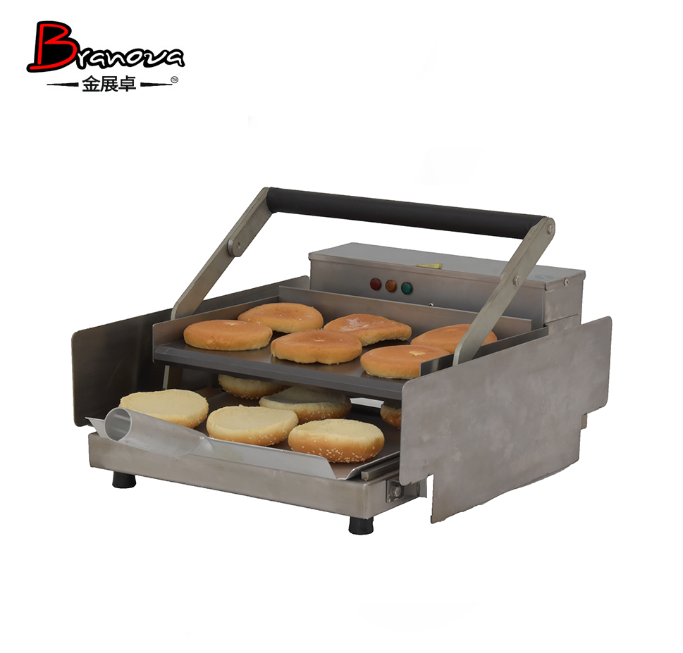 烘包机是用来加热面包的,使汉堡包有一定的温度,增加口感,利用高温在短时间内加热面包,使面包中的原料香味烤出来,不会蒸发太多的水分,让食用者闻到香味,吃起来不干燥又十分爽口。
