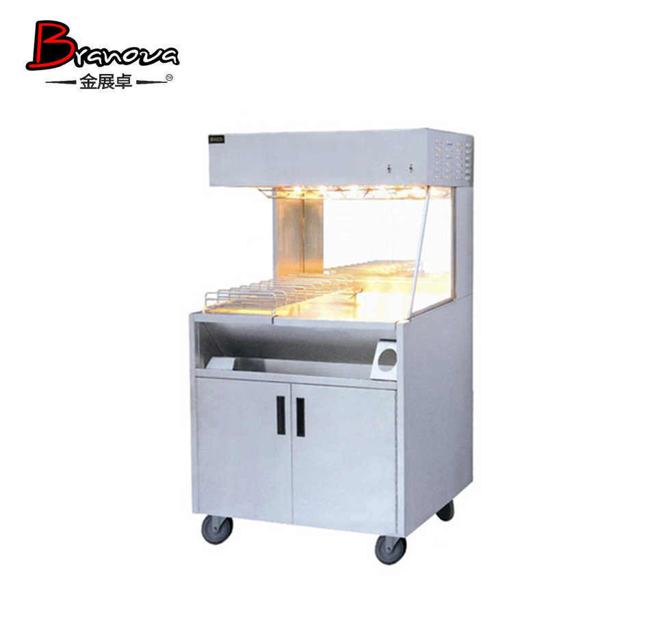 弧盆中备有隔板,方便将不同种类的炸物分开存储;配件可以左右移动,包括玻璃挡板、搁架、弧盆。无论炸炉摆放在薯条保温柜的哪一侧,配件都可以调换位置