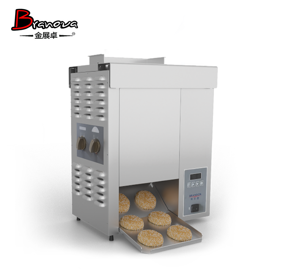 烘包机是用来加热面包的,使汉堡包有一定的温度,增加口感,利用高温在短时间内加热面包,使面包中的原料香味烤出来,不会蒸发太多的水分,让食用者闻到香味,吃起来不干燥又十分爽口。